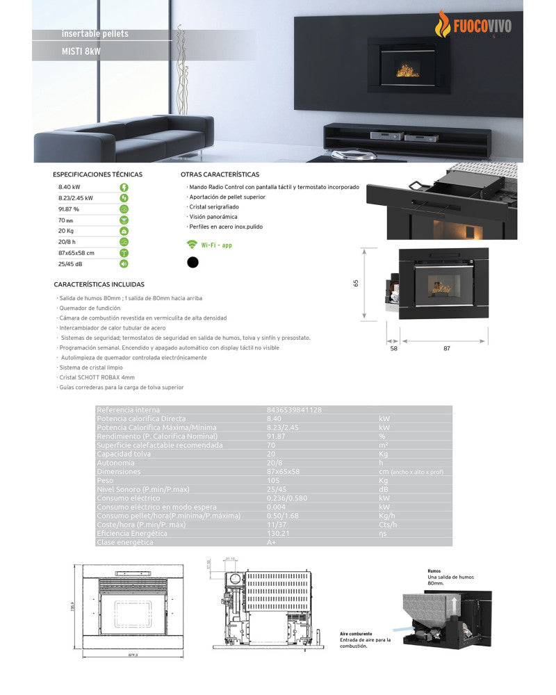 - Salida de humos 80mm: 1 salida de 80mm hacia arriba